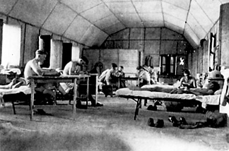 Commando Course, Palestine 1942 (C Hansford) Yorky, Cecil, and Arthur Leroy outside their billet at Gaza, about to start a Commando course.