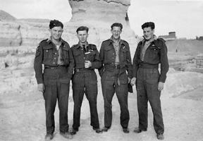 Ivan, Johnny, Reg, Bill: Egypt early 1943 (Masheder family collection) Two crews? Ivan (with Observer’s winged 'O' and Wireless Operator’s sparks badge), Johnny (with Pilot’s wings), Reg as Sgt Observer, and Bill with Pilot’s wings.