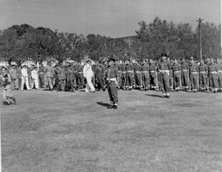 Lord Mountbatten and the King of Siam, Bangkok 1946 (RAF official) His Royal Highness the young King of Siam and the Supreme Commander SEAC inspect the RAF Detachment, 19 January 1946, Bangkok. Possibly Les, 4th from the left in the front rank. The celebrations were accompanied by a mass flypast of 211 Squadron and other aircraft. The Victory celebrations were well recorded by Squadron members including Ron Kemp, Des Marsh-Collis, Monty Walters and Herbert Winnington, and in which Tom Taylor took part.