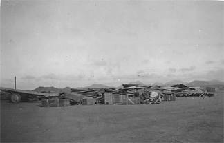 “Orderly room, Wadi Gazouza” c1940 (Goddard collection) A typical shot by Cpl Alick Goddard, of 52 Repair and Salvage Unit, when based there from late 1940. His photographs were consistently well-judged in subject, exposure and focus.